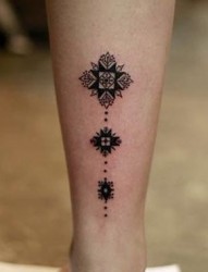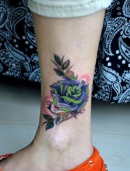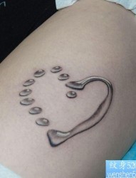 女孩子腿部潮流好看的水滴爱心纹身图片