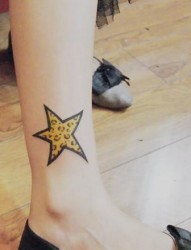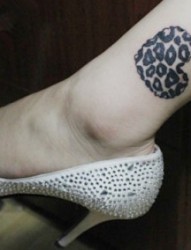 女孩子腿部潮流精美的豹纹五角星纹身图片