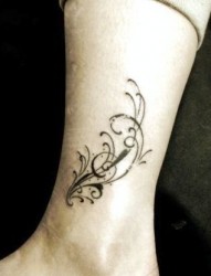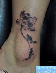 女人脚踝水墨画鲤鱼莲花纹身图片