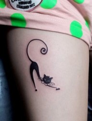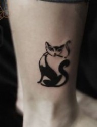 女孩子腿部可爱流行的图腾猫咪纹身图片