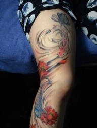 女孩子腿部小鲤鱼纹身图片