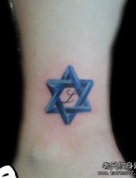 女孩子腿部精美的一幅六芒星纹身图片