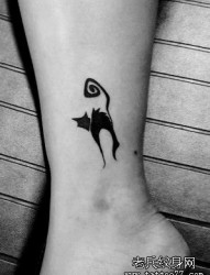 女孩子腿部流行是图腾猫咪纹身图片