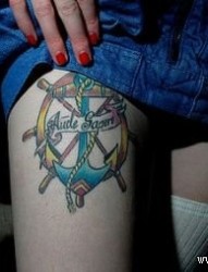 女孩子腿部精美的船锚与船舵纹身图片