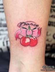 女孩子腿部流行的蝴蝶结与樱桃纹身图片