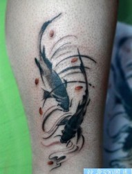 腿部一幅潮流的水墨画鲤鱼纹身图片