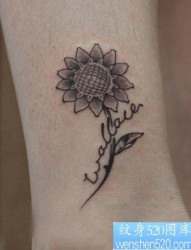 女人腿部一幅好看的向日葵花纹身图片