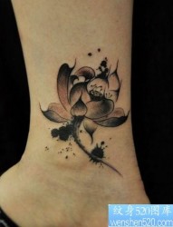 美女腿部潮流流行的水墨画莲花纹身图片