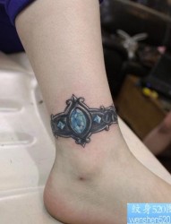 女孩子腿部一幅宝石臂环纹身图片