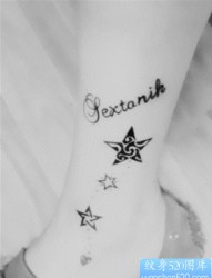 女孩子腿部五角星钻石纹身图片