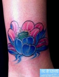 女孩子腿部一幅彩色莲花纹身图片