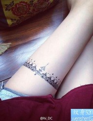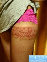 美女腿部漂亮唯美的蝴蝶结蕾丝纹身图片