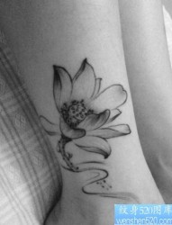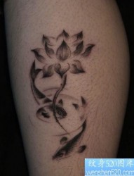流行的腿部水墨画鲤鱼莲花纹身图片