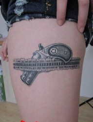 女人腿部简单潮流的蕾丝手枪纹身图片