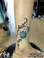 美女腿部好看的图腾爱心藤蔓纹身图片