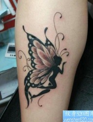 女人腿部漂亮的黑灰蝴蝶精灵纹身图片