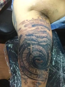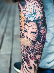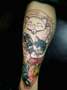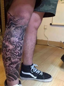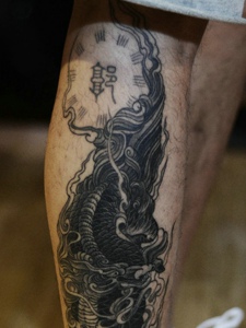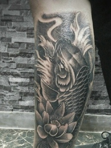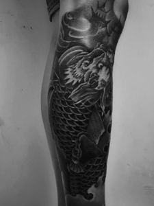 包小腿黑白鲤鱼纹身图片尽显年轻