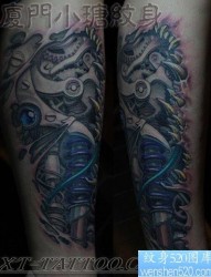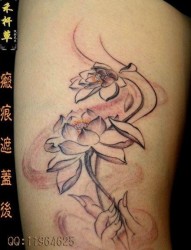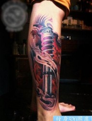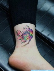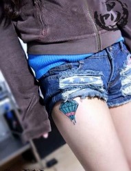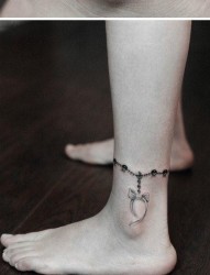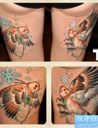 女人腿部好看的小豹子爱心翅膀纹身图片