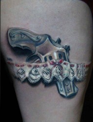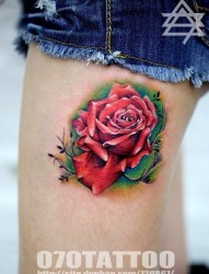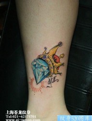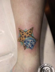 女人腿部漂亮的豹纹五角星与彩色钻石纹身图片