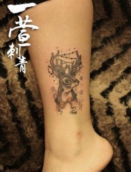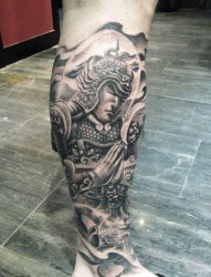 男生腿部经典帅气的韦驮菩萨纹身图片