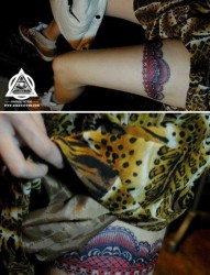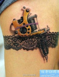 美女腿部潮流精美的蕾丝与纹身机纹身图片