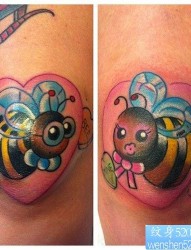 女人腿部膝盖处可爱的小蜜蜂纹身图片