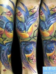 腿部唯美经典的欧美彩色小燕子纹身图片