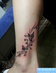 女人腿部精美潮流的图腾蝴蝶藤蔓纹身图片