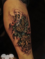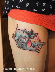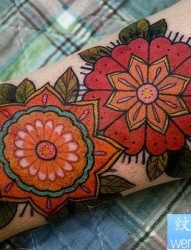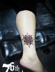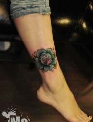 美女腿部潮流漂亮的彩色莲花纹身图片