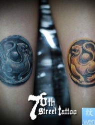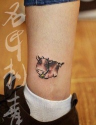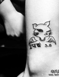 女人腿部可爱潮流的图腾猫咪纹身图片