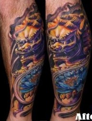 女人腿部潮流漂亮的彩色莲花纹身图片