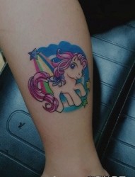 女人腿部时尚可爱的小马纹身图片