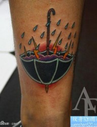 腿部潮流帅气的old school雨伞纹身图片