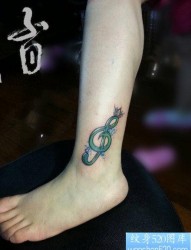 女人腿部时尚精美的音符纹身图片