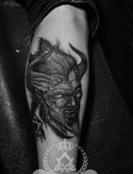 腿部超酷凶悍的恶魔撒旦纹身图片