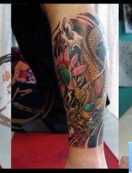 腿部超帅潮流的彩色图腾纹身图片