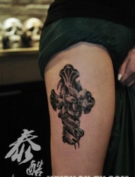 女人腿部经典时尚的十字架纹身图片