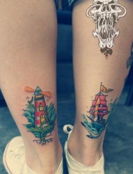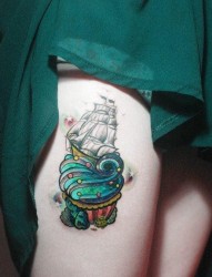女人腿部漂亮时尚的冰激凌帆船纹身图片