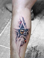 男生腿部漂亮潮流的玫瑰花纹身图片
