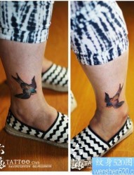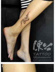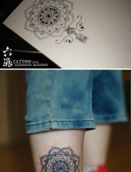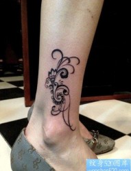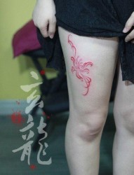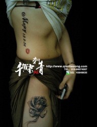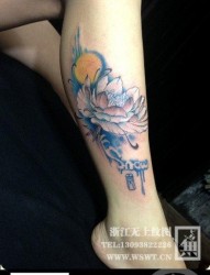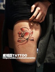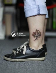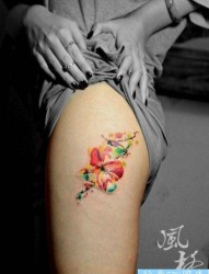 女人腿部唯美漂亮的彩色喷墨花卉纹身图片