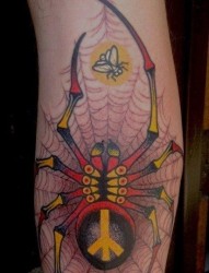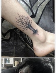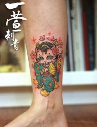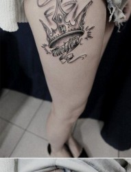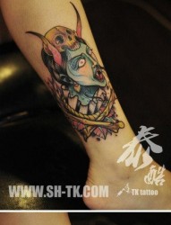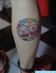 女人腿部一幅经典的小丑哭脸与笑脸纹身图片