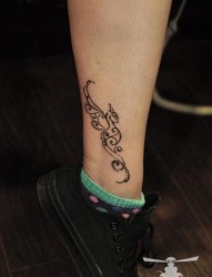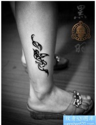 美女腿部唯美漂亮的黑白玫瑰花与蝴蝶结纹身图片