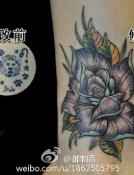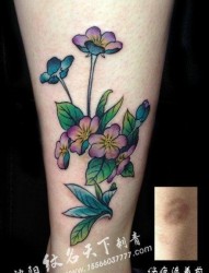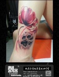 女人腿部另类经典的罂粟花与熊爪印纹身图片