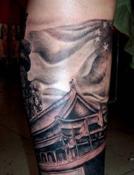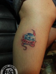 男生腿部经典时尚的一幅欧美彩色沙漏纹身图片