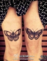 女人腿部唯美时尚的黑白蝴蝶纹身图片