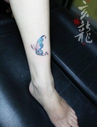女人腿部漂亮唯美的彩色蝴蝶纹身图片