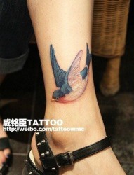 女人小腿唯美时尚的小燕子纹身图片
