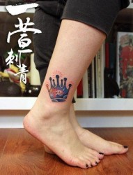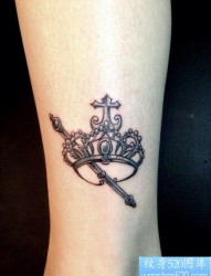 女人腿部时尚经典的皇冠权杖纹身图片