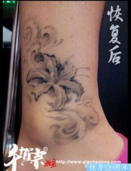 女人腿部潮流唯美的黑白百合花纹身图片