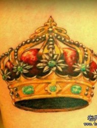 腿部时尚精美的彩色皇冠纹身图片